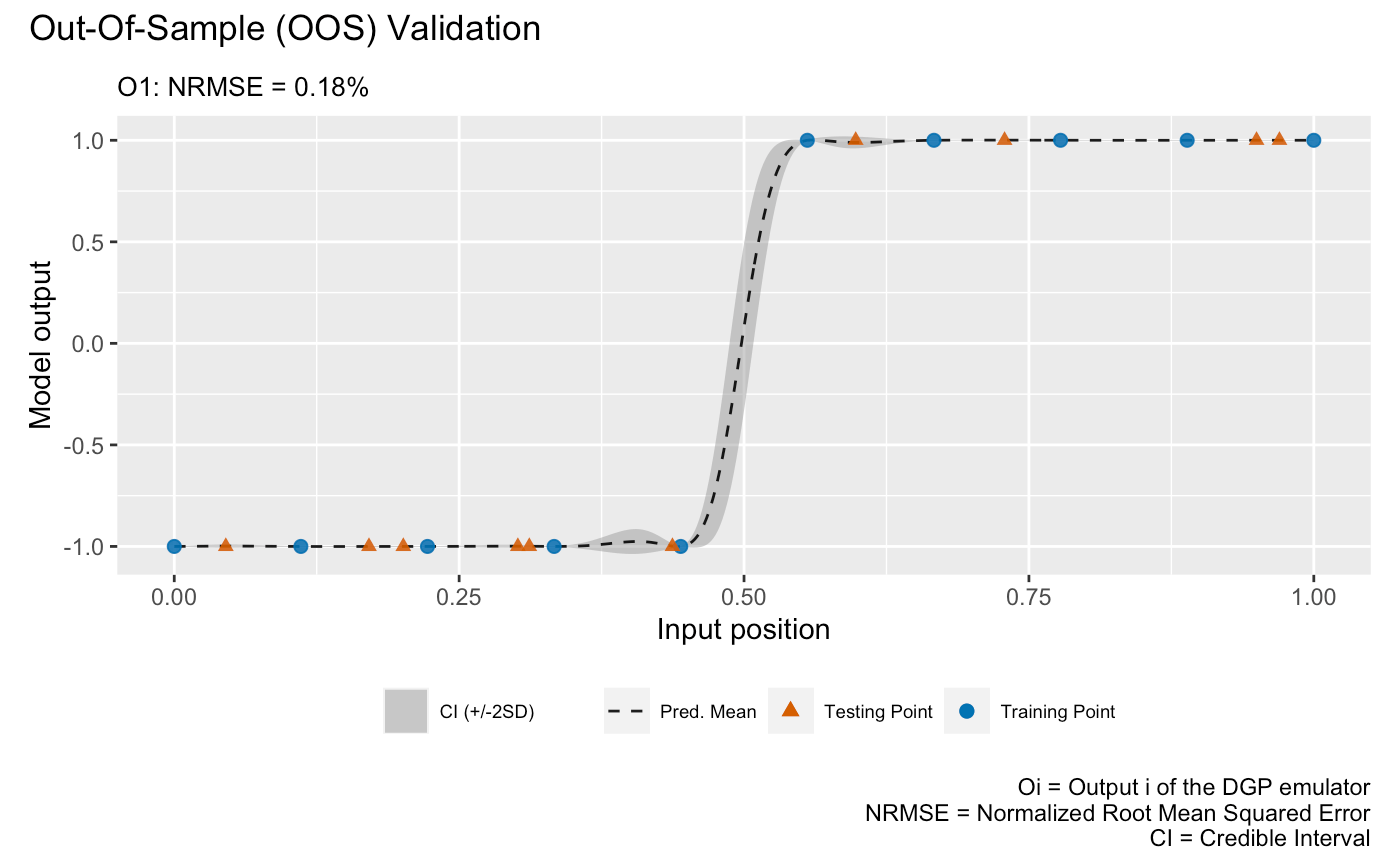 The second validation plot is the Out-Of-Sample (OOS) validation plot that requires an out-of-sample testing data set. Here we generate an OOS data set that contains 10 testing data points: